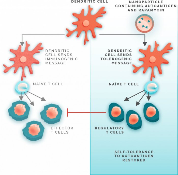 There is a significant need for antigen-specific therapies that can induce immune tolerance without the need for chronic and systemic immune suppression. ImmTOR is designed to restore natural self-tolerance by co-administration with nanoparticle-encapsulated autoantigens.