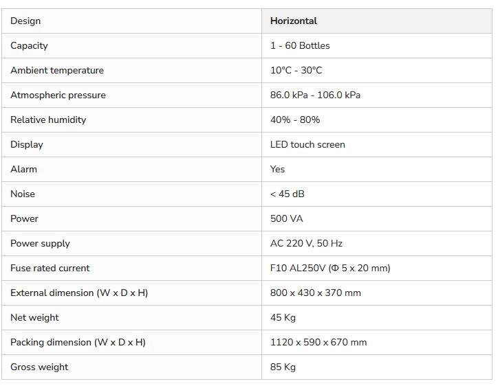- Independent temperature control: 35.0 °C ± 1.5 °C