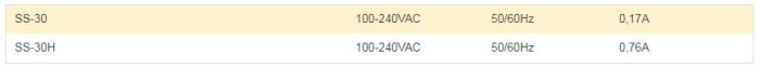 - Nominal voltage: 100-240 VAC/50-60 Hz