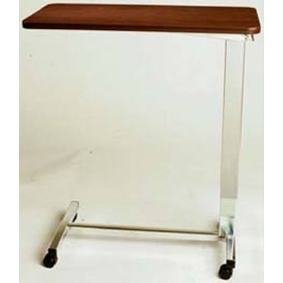 This automatic overbed table features a 15in x 30in top, sits on an H-base, and features a vanity mirror.