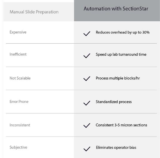 Build a consistent, quality workflow for slide preparation. SectionStar will help you make your lab more profitable and deliver a better patient experience.