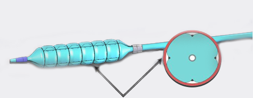 - Reduces the strain and trauma induced on the vessel walls during inflation through the use of "pillows"