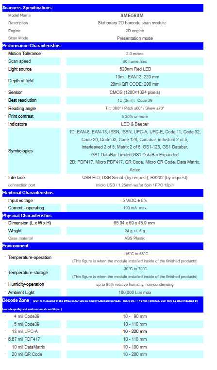 Riotec - Model 2D SME560M -Barcode Scan Module