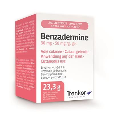 Local Treatment of All Forms of Acne Vulgaris: BENZADERMINE gel, composed of erythromycin (3%) and benzoyl peroxide (5%), is a medicinal product for local treatment of acne vulgaris.