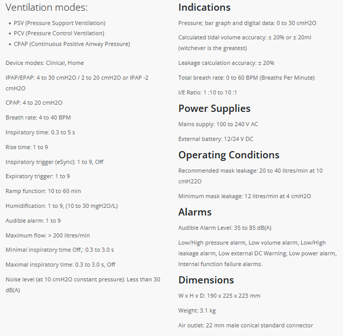 Non-invasive ventilation is all about having the opportunity to choose the optimal device for the patient. The Bi-Level Ventilators with high-performing triggering technology, eSync* gives an exellent option for each application, along with a user friendly design and user interface.