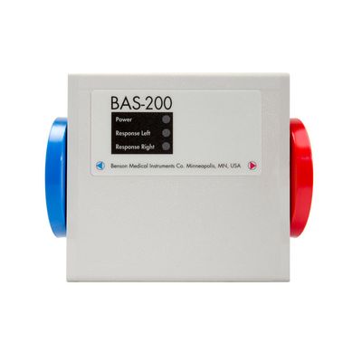 If you have a soundproof room, the BAS-200 Bio-Acoustic Simulator performs dependable daily calibration checks of the CCA-200mini, CCA-100mini, and Next audiometers as required by OSHA 29 CFR 1910.95. Your testing equipment needs to be calibrated daily. Depend on the BAS-200. Because the BAS-200 is powered by the Benson Medical Instruments audiometer, there is no need to worry about battery life. Connecting the response switch to the BAS-200 returns the system to subject testing.