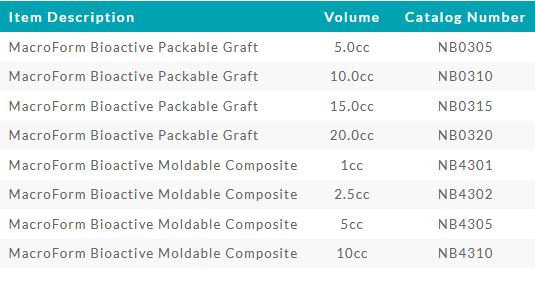 - The amount of bioactive glass available in MacroForm devices is greater than any other competitive product.