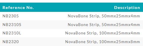 NovaBone Strip Bone Graft is a sterile bone graft composed of purified fibrillar collagen and resorbable bioactive synthetic granules. The open structure allows for rapid vascularization and mineralization and permits complete device absorption and replacement by new bone.
