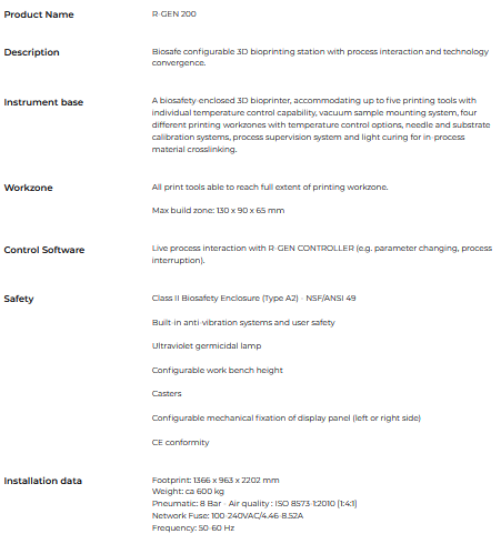 Regenhu - Model R-GEN 200 -Bioprinting Station