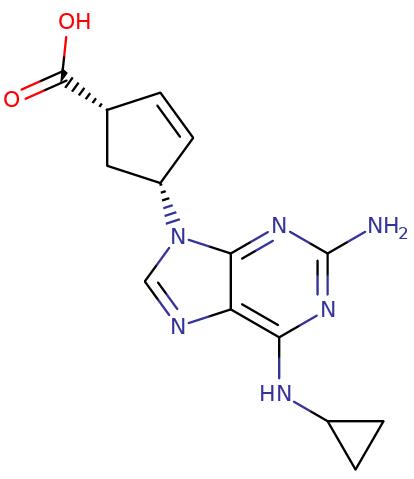 - Smiles: C1CC1NC2=C3C(=NC(=N2)N)N(C=N3)[C@@H]4C[C@@H](C=C4)C(=O)O