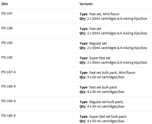 Elements Bite Registration materials are formulated to have a light, mousse-like consistency ideal for occlusal registration. The material is thixotropic and stays where placed. Elements Bite Registration materials offer variable setting times, sets rock hard and are easy to trim.
