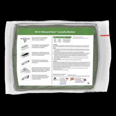 The Blizzard Heat® Trauma Blanket provides TOG 7 thermal insulation and prevents heat loss in the trauma patient in cases of hemorrhage, inclement weather exposure or immersion in water. The Reflexcell® material’s cellular network traps warm air, the metalized surface reflects heat back to patient, and the cord prevents heat from escaping. The large removable heat pads provide exceptional warmth to the upper and lower core. The Blizzard Heat® Trauma Blanket is widely used by the US Military for the treatment of trauma patients.