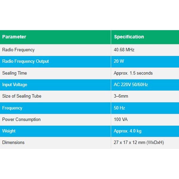- Maximum Sealing Time -1.5 seconds