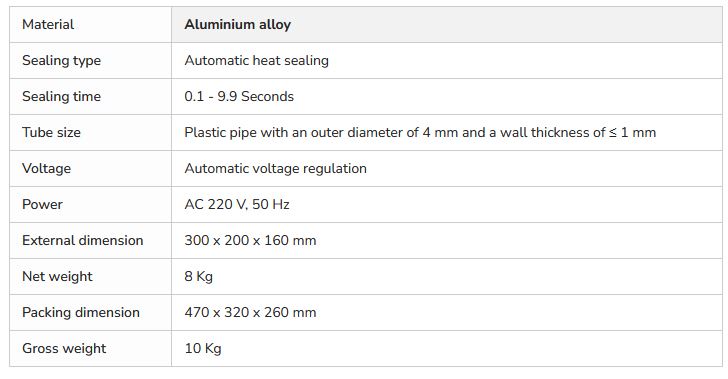- They are used for safe, airtight sealing of medical-grade plastic tubing, especially in blood banks and hospitals. They ensure sterile, damage-free sealing ideal for medical and industrial applications.