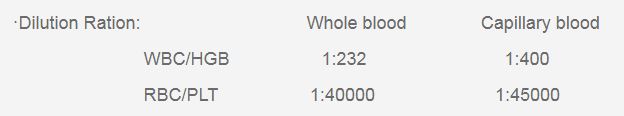 - Principles of operation:WBC/RBC/PLT: Electrical Impedance HGB: Photoelectric colorimetry