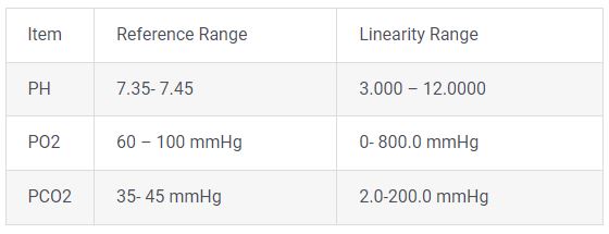 Blood gas electrolyte analyzer includes blood gas measuring items (PH, PCO2, PO2). It is used to detect partial pressure of Carbon Dioxide (PCO2),and partial pressure of Oxygen (PO2) value.