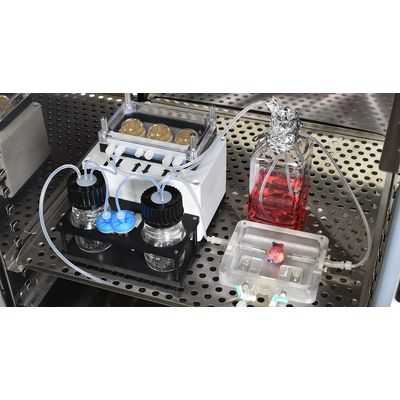 Features: Non-contact pressure measurement. It measures the flow path pressure during perfusion, aseptically. By feeding back to the pump, constant pressure liquid feeding is also possible. * The illustration is an image of one line. The pump unit can be installed in a CO2 incubator: Adopts a moisture-proof design and shield technology. It is possible to install a perfusion system, including a pump, in a CO2 incubator. It will control the two channels independently. Touch panel controller: You can intuitively switch between constant pressure/pulsation and constant pressure/constant flow rate perfusion modes. The data logging function is available, as standard.