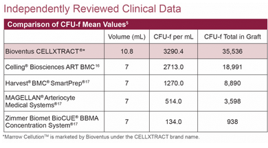 - Independently reviewed clinical data shows the number of stem cells collected by CELLXTRACT, as counted by fibroblast-like colony-forming units (CFU-f), are greater than aspirations from a standard needle of similar volumes and is comparable or greater than final products after centrifugation.5