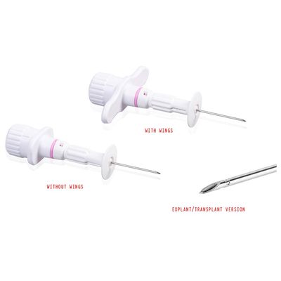 - Triple sharpened tip cannula to allow a non traumatic, fast and easy penetration into the bone marrow cavity.