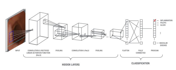 All small bowel capsule systems are not created equal. Using novel aspherical lens technology, the NaviCam SB has an image resolution of 640*480, Frame Rate of 0.5 – 12 FPS and an extended battery life of up to 12 hours. But what makes the NaviCam SB System different is the ProScan Intelligent Reading Support and is the driving reason why AnX Robotica is not just another capsule company. ProScan incorporates Deep Neural Networks (DNN), such as a Convolutional Neural Network (CNN), a deep learning algorithm that can differentiate one image from another. This deep learning model enables ProScan to assist with the identification of multiple subtypes of abnormal lesions found in the small bowel as well as improving efficiency. The DICOM enabled NaviCam SB with ProScan… your solution for improved efficiency for small bowel studies.