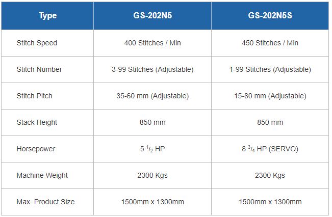 Independent control for front and rear feeding wheels offer auto-feed and push in control types to fit different product. A patent feeding wire device can smooth and indeed to feed wire. Double Linkages Stitching Head makes by special alloy steel with precise grinding. That is less requiring to lubricate and easy to maintain. New designing for stopper device outstands before limit. That can do special box without cover or just short cover.