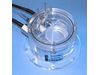 for resting the slices, it consists of a closely fitting acrylic ring in a manifold. A removable piece of nylon netting is wedged between the ring and manifold. In operation, the BSK-AM is filled with ACSF so as to totally immerse the net and ring. A ceramic bubbler to one side is supplied with 95% O2 / 5% CO2 gas mixture to both saturate the ACSF and to produce circulation of the ACSF from the top downwards on to the net surface on which brain slices are placed. The circulation also provides for even heat distribution and feedback control from the heating element and sensor elements below. A deflector shield between the bubbler and the base of the nylon net prevents bubbles from being trapped under the slices and ensure continuous circulation of medium. Slices remain viable for many hours in these conditions. The BSK-AM fluid volume is typically 150ml. A close fitting lid with a sealing ring carries two stainless tubes into the base of the chamber. These tubes can be used to provide ASCF to the Alpha MED Sciences Perfusion Cap for their multi-electrode array probes. A third venting tube carries humidified oxygen which can also be used to supply the Alpha MED Sciences cap for interface slice applications.