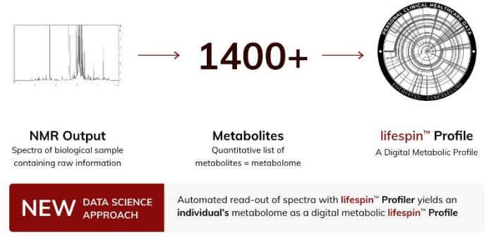 lifespin is developing a breakthrough diagnostic testing platform capable of quantitatively detecting individual metabolomes, i.e., up to hundreds of metabolite concentrations with a single nuclear magnetic resonance (NMR) measurement This allows quantitative identification of deviations of an individual’s metabolism from a healthy baseline based on lifespin’s proprietary database. We are building a proprietary Healthcare Diagnostics Software-as-a-Service solution that combines quantitative, digital scanning of metabolic information with AI-enhanced Data Science.