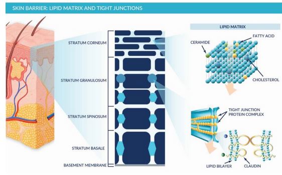 The skin is the body’s natural protective layer, with two primary barriers to passage: the stratum corneum on the surface and restrictive junctional proteins deeper in the skin. The stratum corneum is composed of flattened corneocytes set within a waxy, lipid matrix. This barrier is very effective at keeping water and nutrients inside the body and pathogens and chemicals out, making it the largest hurdle for most transdermal delivery technologies. The deeper junctional proteins further function to hold adjacent skin cells together and provide another barrier to transdermal drug delivery.