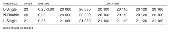 Breast localization needle for non palpable mammary lesions. Available in SINGLE and DOUBLE HOOK wire configuration. Also available in marked and stiffened versions. Echogenic treatment for ultrasound guided procedures. Centimeter markings and sliding stopper. Sterilized by ETO, shelf life 5 years.