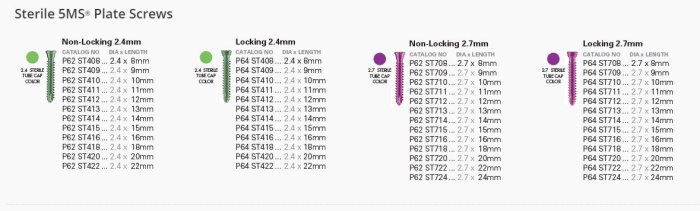 - 2.4/2.7mm Locking & Non-Locking Screws