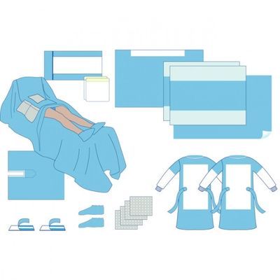 Each Pack consists of: Mayo Stand Cover 80 X 150 CM 1 Pc; Instrument Table Cover 150 X 200 CM 2 Pcs; U Split Perineal Drape 150 X 260 CM 1 Pc; Cardiovascular Drape 240 X 320 CM 1 Pc; Feet Socks Standard 2 Pcs; Adhesive Drape 75 X 90 CM 1 Pc; Mobile PVC Bag 30 X 35 CM 2 Pcs; Op-Tapes 10 X 50 CM 2 Pcs; Medical Towels 40 X 40 CM 4 Pcs; Reinforced Surgical Gown LARGE 2 Pcs; Bundle Cover 100 X 100 CM 1 Pc; Wrapping Sheet 100 X 100 CM 1 Pc; Sterilization Pouch Standard 1 Pc;