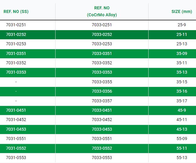 Femoral Head Modular Ø 28 Mm 12/14 Mm, Femoral Head Modular Ø 22 Mm 12/14 Mm, Bipolar Head, Acetabular Screw, Acetabular Liner (10°), Acetabular Cup Poros Coated (Cementless), Acetabular Cup Dual Coated (Cementless), Cement Plug, Distal Centralizer.