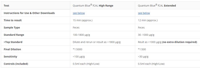 Quantum Blue® fCAL high range: Health Canada Licence: 88674