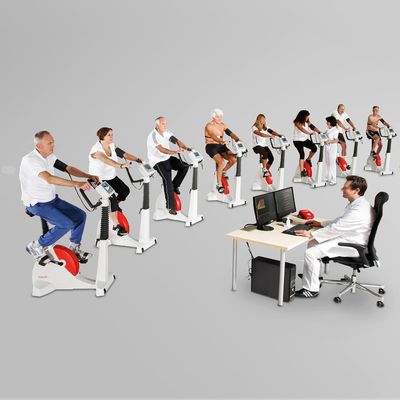 SRMS (SCHILLER Rehabilitation Management System) is a cardiac rehabilitation unit that allows up to 16 patients to safely train simultaneously. This Windows-based application automatically controls all connected ergometers and treadmills. Entering patient data, managing exercise sessions and creating reports have become simple tasks that no longer require tedious manual steps.