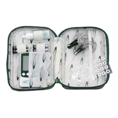 This soft sided, portable carry case is a convenient way to store the Alpha-Stim AID and accessories. The zippered case unfolds to reveal 2 compartments designed to hold the Alpha-Stim AID, a bottle of conducting solution, and 4 AAA batteries. Additional accessories can be stored in the see-through mesh pocket.