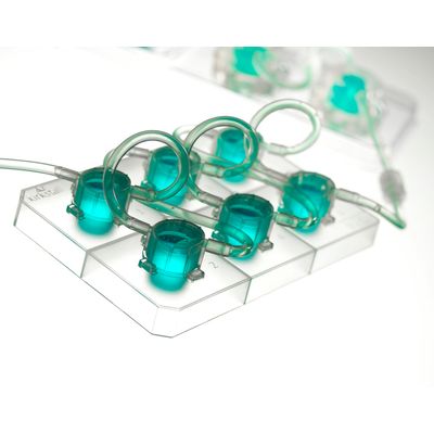 The QV900 6-chamber optical tray provides a compact, disposable unit ideal for high-content experiments and industrial use. Each QV900 tray consists of 6 chambers, each with individual lids and connectors, in the same footprint as a standard well plate, creating a compact unit which allows a range of configuration options. The tray is formed of high-quality optically-clear plastic, allowing for live cell imaging and microscopy of cultures in situ within the plate.