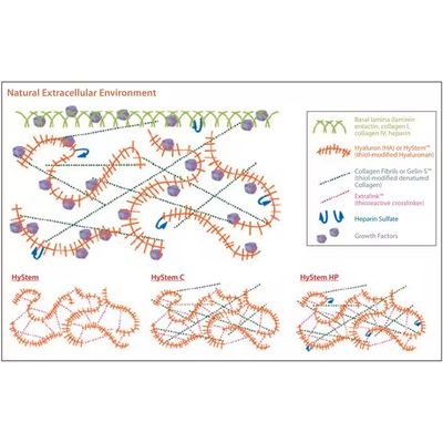 Customizable and free of animal components, Hystem hydrogel cell culture scaffolds provide a complex, three dimensional environment in which cells are able to proliferate, much as they would in vivo. Customizable - each distinct cell type in a multicellular organism has its own unique microenvironment. Hystem offers the flexibility to tailor the environments of cultured cells to mimic their in vivo counterparts and optimize proliferation and differentiation. Animal Component Free - As a synthetic Hyaluronic acid-based matrix, Hystem offers complete control of the cellular environment. All components are well-characterized, consistent, and derived from non-animal sources. Biologically accurate - Rich in hyaluronic acid, the Hystem hydrogel closely mimics the complex three dimensional cellular environments found in life, providing an optimal environment for culturing your cells.