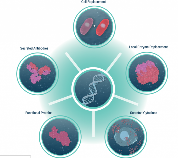 - Gene: genetic engineering to enhance those authentic cells with specific functions to improve their therapeutic effect