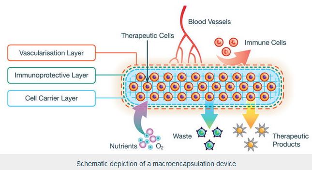 The StealthTM T-bag for Cells as Medicines, for diseases such as Type I diabetes, Haemophilia or Parkinson’s, is an immunoprotective membrane enclosing cells on carrier scaffolds.