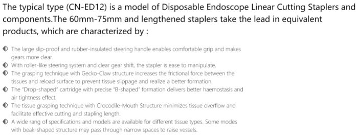 Channel - Model CN-ED12 -Typical type Disposable Endoscope Linear Cutting Staplers and Components