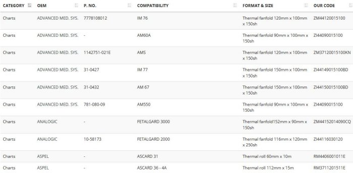 Evolving from the industrial chart production, our passion for precision expanded to medical paper, whose superior quality meets the highest OEMs` specifications to guarantee the smoothest operation on all recorders. They also conform with the European safety, health and environmental protection requirements and have been consequently awarded theCE marking. The European certification is consistent with Tecnocarta`s quality management system, which has been certified according to the UNI ENISO 13485standard. Our assortment includes rolls, fanfolds and labels for all uses, from ECG, EEG and CTG to bloodbanks and laboratories, and nearly every existing recorder brand, from Schiller and HP/Philips to Marquette and Sonicaid.