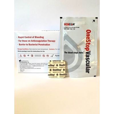 OneStop Vascular is a chitosan-based wound dressing that provides rapid bleeding control in patients following hemodialysis and for those on anticoagulation therapy. In addition to providing rapid hemostasis, OneStop Vascular also offers an antibacterial barrier against a wide range of microorganisms including antibiotic-resistant Staphylococcus aureus (MRSA), Enterococcus faecalis (VRE), and Acinetobacter baumannii.