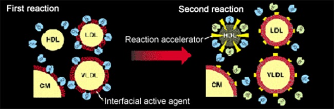The reaction accelerator allows free cholesterol on the surface of LDL or VLDL to react with the enzyme.
