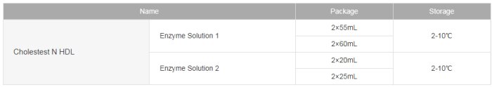 Cholestest N HDL is a liquid reagent for the measurement of HDL-cholesterol by the direct method, using differences in specificities of detergent to lipoprotein. The reagent does not contain polyanions or magnesium salts, allowing the accurate measurement of samples with high levels of globulin or TG. The reagent will not form insoluble precipitates upon the addition of an alkaline washing solution, therefore there will not be any burden on the instrument.