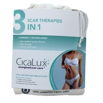 • Order 1 CicaLux kit for single scars (up to 15 cm long) from incisional surgeries such as c-section and hysterectomy.