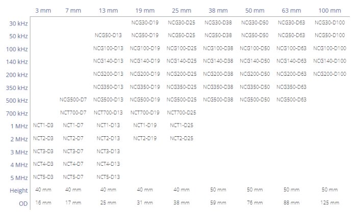 Designed for use in air and other non-corrosive gaseous environments. All units built standard with aluminum housing and BNC connectors. Models at frequencies of 500 kHz and lower include Ultran proprietary gas matrix piezoelectric (GMP™) composite. Models at 700 kHz and higher built with high performance polymer-based piezocomposite.