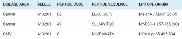- HLA-A*01:01, A*02:01, A*03:01, A*11:01, A*24:02