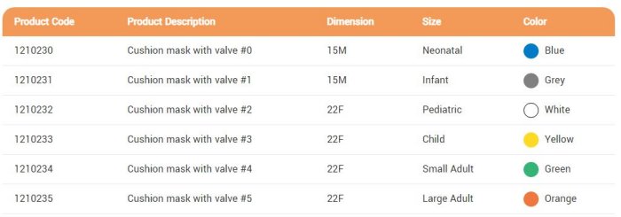 Leak-proof, soft and comfortable seal cushion; Clear crown and cushion design for better patient observation; Light weight for patient comfort; Low dead space; Available in full range of 6 sizes.