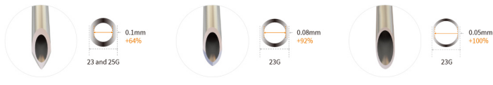 - Various types of needle thickness provide the injection solution smoothly or quickly flow.