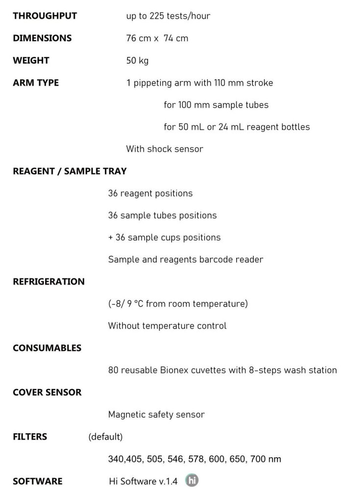 Edif - Model Pulsar -Clinical Chemistry Analyzer System